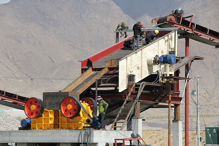 本產(chǎn)品以電動(dòng)機(jī)為動(dòng)力,通過(guò)電動(dòng)機(jī)皮帶輪,由三角皮帶和槽輪驅(qū)動(dòng)偏心軸,使動(dòng)顎按預(yù)定軌跡作往復(fù)運(yùn)動(dòng),將進(jìn)入由固定顎板、活動(dòng)顎板和邊護(hù)板組成的破碎腔內(nèi)的物料破碎,并通過(guò)下部的排料口將成品物料排出。